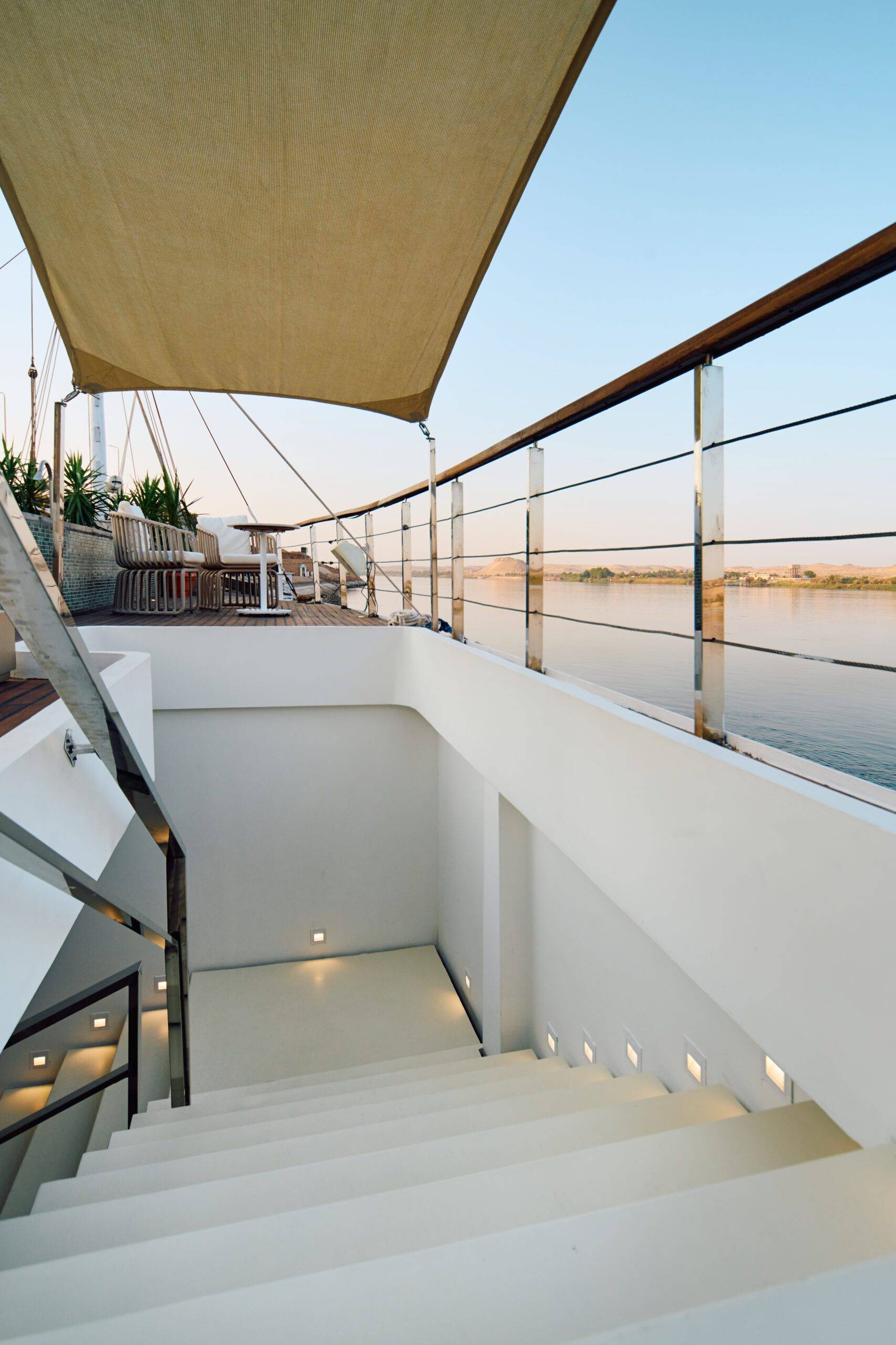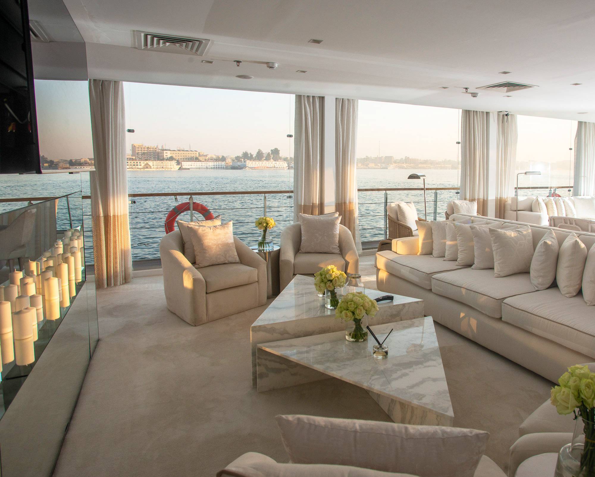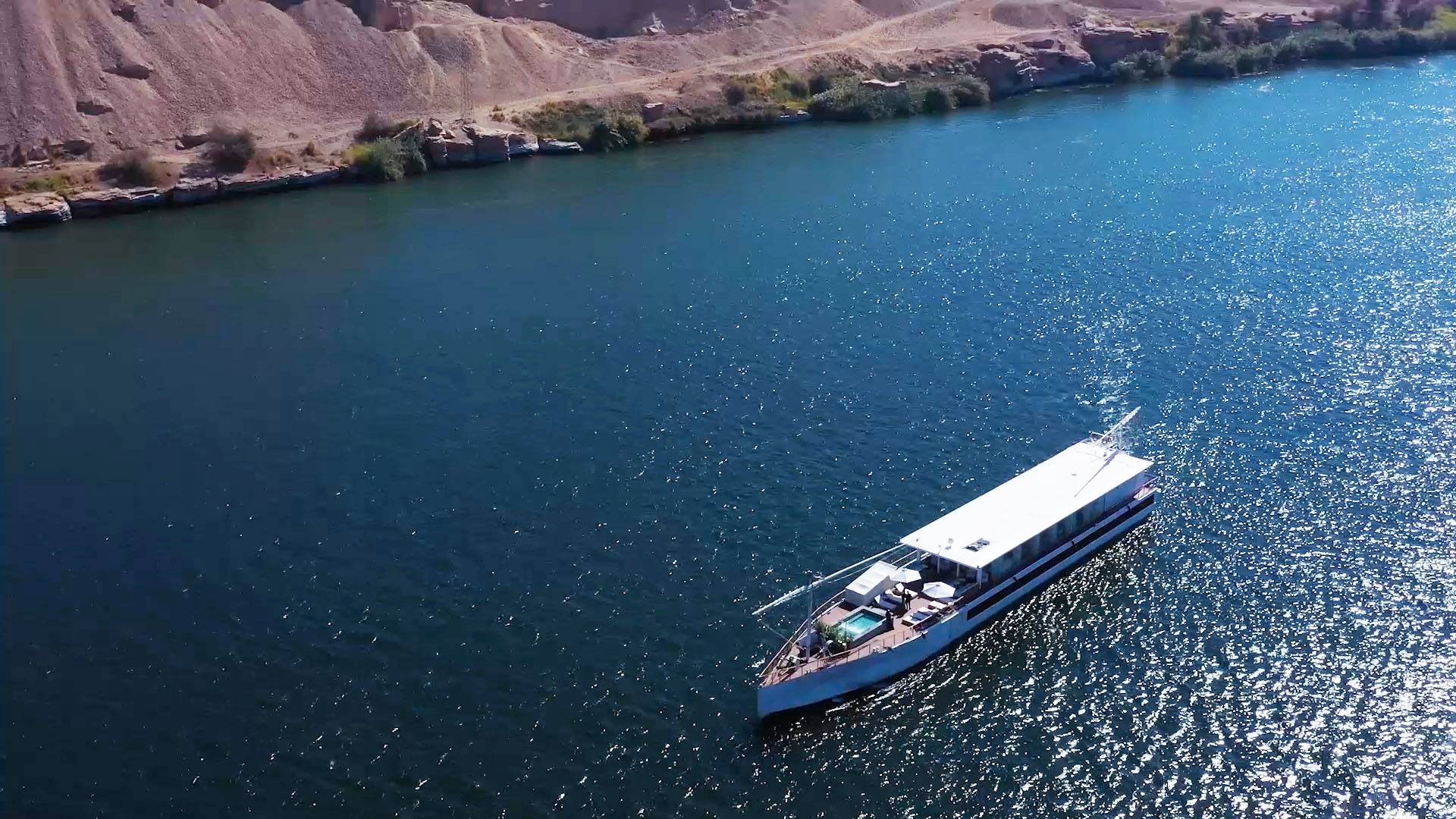 Embark on an extraordinary journey aboard BERGE, a private yacht designed to blend refined comfort with the mystique of the Nile. Its two expansive decks offer an atmosphere of elegance and exclusivity, creating the perfect setting for an unforgettable voyage through history. The lower deck welcomes you with a graceful lobby and leads to eight stylish cabins, each thoughtfully appointed for privacy and relaxation. The crown jewel is the Owner’s Suite, a sanctuary of space and light with sweeping river views. Above, the upper deck unfolds into a luminous lounge and dining area, where floor-to-ceiling windows frame the passing landscape. Step outside to discover the yacht’s open-air heart: a serene pool, inviting lounges, and versatile spaces ideal for al fresco dining or simply soaking in the river’s timeless tranquility. Every detail of BERGE is designed to showcase the majesty of the Nile. From dawn’s golden glow to the soft twilight reflections on the water, the voyage becomes more than travel—it is an immersion in beauty, comfort, and history.