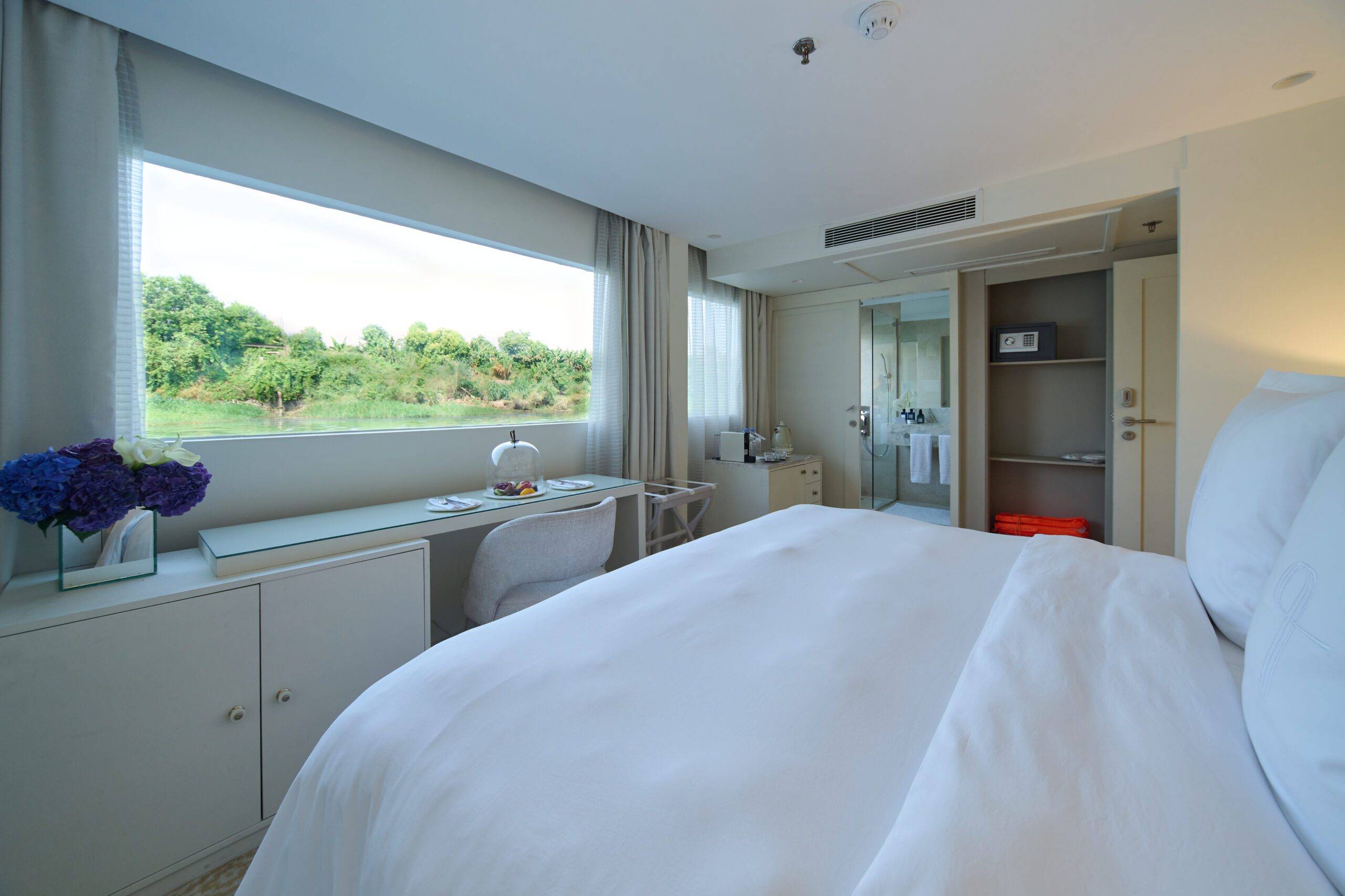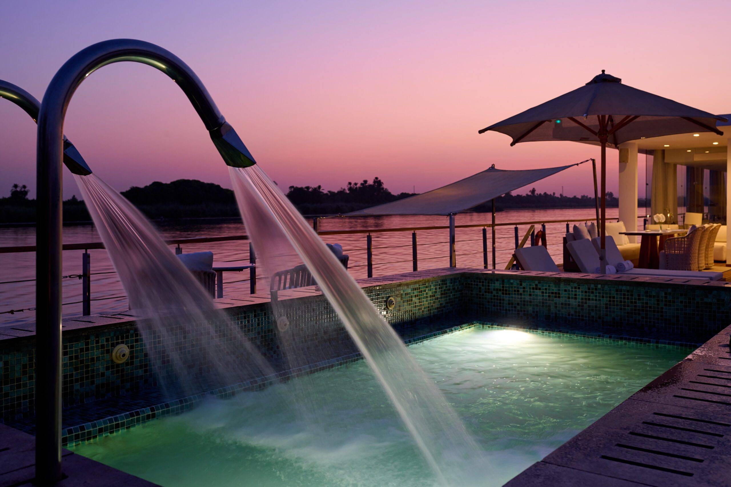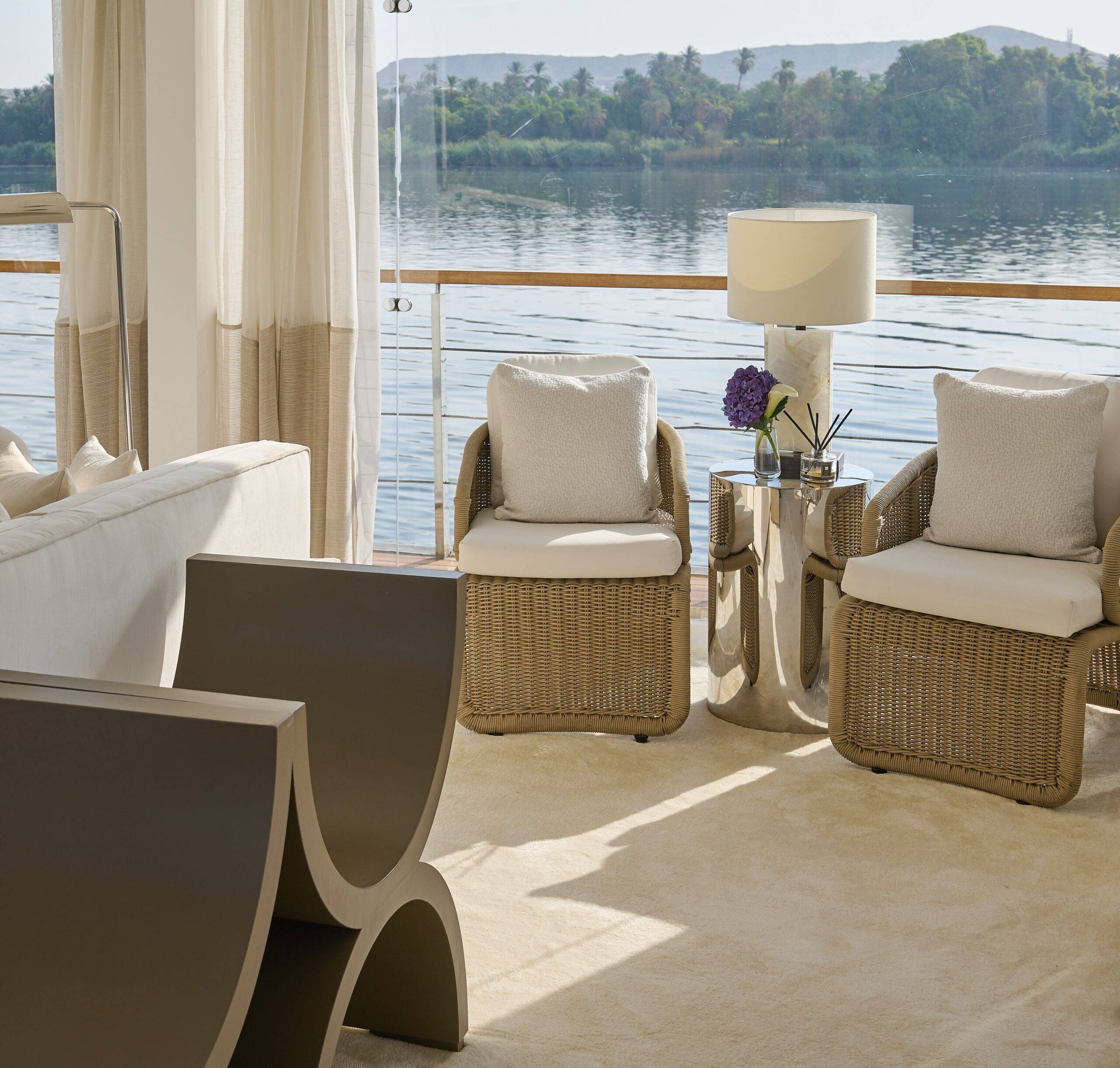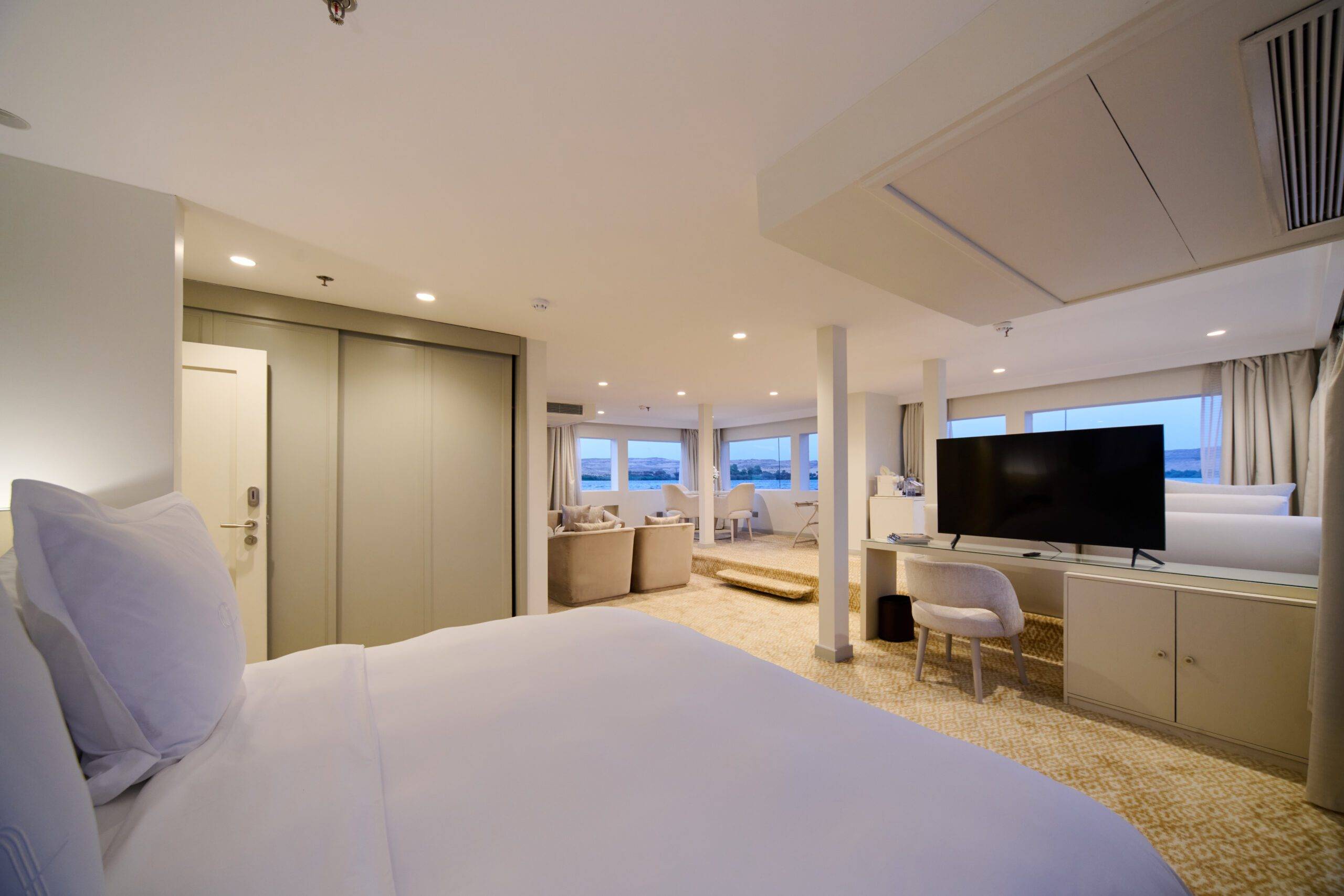 Embark on an extraordinary journey aboard BERGE, a private yacht designed to blend refined comfort with the mystique of the Nile. Its two expansive decks offer an atmosphere of elegance and exclusivity, creating the perfect setting for an unforgettable voyage through history. The lower deck welcomes you with a graceful lobby and leads to eight stylish cabins, each thoughtfully appointed for privacy and relaxation. The crown jewel is the Owner’s Suite, a sanctuary of space and light with sweeping river views. Above, the upper deck unfolds into a luminous lounge and dining area, where floor-to-ceiling windows frame the passing landscape. Step outside to discover the yacht’s open-air heart: a serene pool, inviting lounges, and versatile spaces ideal for al fresco dining or simply soaking in the river’s timeless tranquility. Every detail of BERGE is designed to showcase the majesty of the Nile. From dawn’s golden glow to the soft twilight reflections on the water, the voyage becomes more than travel—it is an immersion in beauty, comfort, and history.